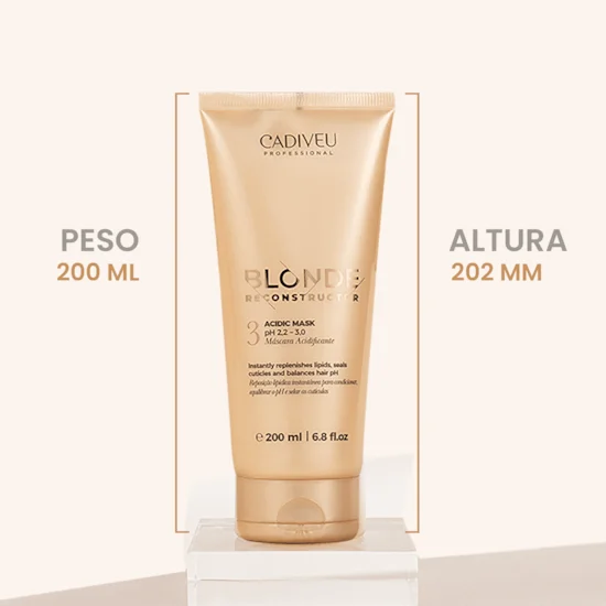 Try the Acidic Mask from the Blonde Reconstructor line and restore the health of your hair while achieving a radiant and full of life look. Don’t wait any longer to have the hair of your dreams – get this revolutionary product now!