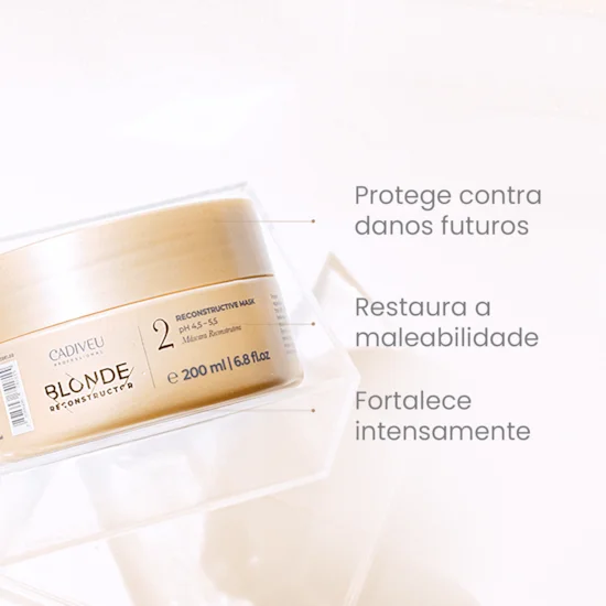 Recommended for all types of hair damaged by the bleaching process – from lightened brunettes to platinum blondes – this mask works on any type of hair: straight, straightened, curly, wavy or frizzy. In addition, it has a super emollient texture and easy application. Try the Reconstructive Mask from the Blonde Reconstructor line