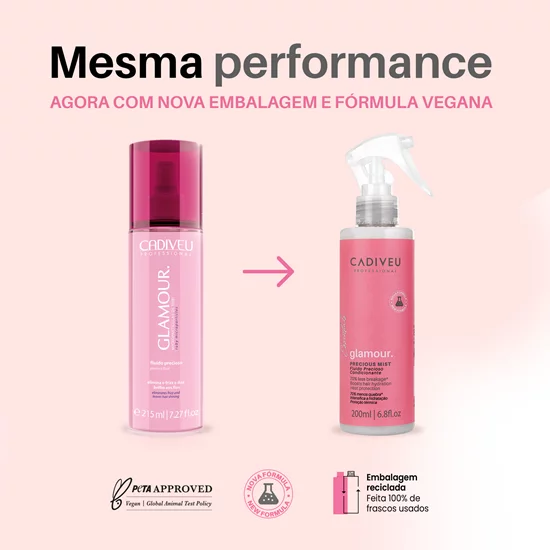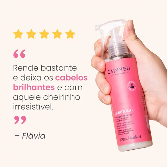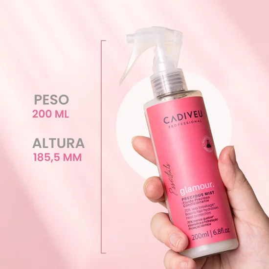 CADIVEU PROFESSIONAL ESSENTIALS’ Glamour Leave-in Precious Fluid has heat protection up to 180ºC, which means you can use a hairdryer, straightener or curling iron without damaging your hair. In addition, its super light texture does not weigh down the strands, making drying easier and leaving your hair with a perfect hairstyle.