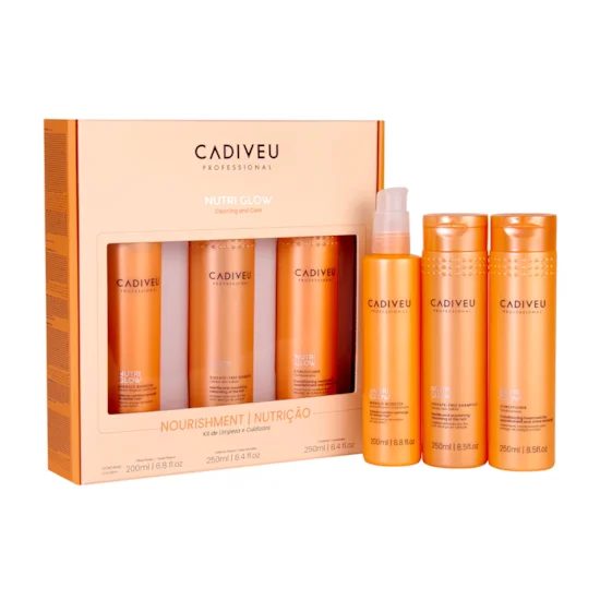 Enjoy all the benefits of this complete kit that offers professional treatment in the comfort of your own home. Feel the difference from the first application! Have hydrated, revitalized and radiant hair every day. Don’t let your hair suffer from dryness and lack of life. Invest in the quality of Cadiveu Professional products and achieve a stunning look! Try the Cadiveu Professional Nutri Glow Booster+Shampoo+Conditioner Homecare Kit