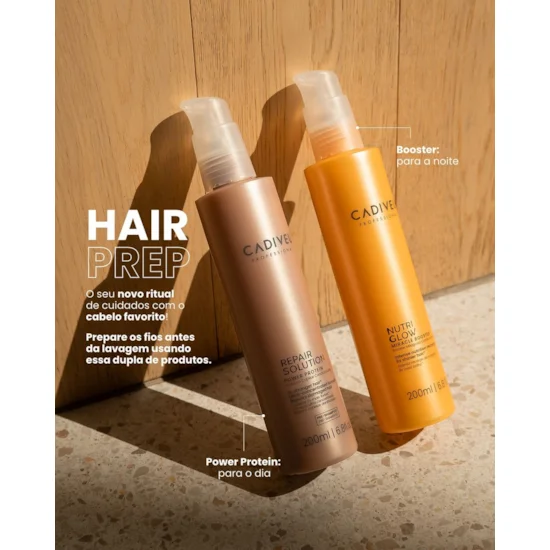 Cadiveu Professional Nutri Glow Booster Miraculous (Night): Developed to nourish and revitalize hair while you sleep, this product acts deeply overnight to restore hydration and vitality to the hair. With a formula rich in nutrients and moisturizing agents, it repairs damage caused throughout the day, leaving hair stronger, silkier and shinier in the morning. Its light, non-greasy texture allows for easy and comfortable application, ensuring long-lasting results.